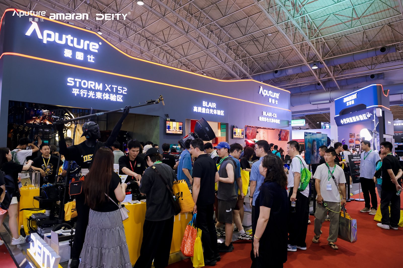 愛圖仕本次以六大體驗區(STORM XT52平行光束體驗區、STORM XT52燈位品鑒區、BLAIR高質量白光體驗區、BLAIR-CG極致彩色光源體驗區、amaran小空間直播體驗區、影視級專業智能燈光控制系統體驗區),依托四大品牌矩陣(Aputure、amaran、DEITY、Sidus Link),全方位展示了多維度產品生態。