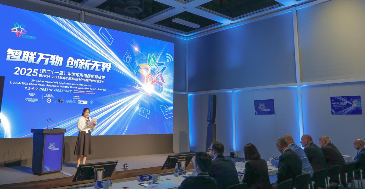 為匯聚全球智慧、激發創新活力,柏林時間2025年9月5日,第二十一屆(2025)中國家用電器創新成果發布盛典在德國柏林IFA展上召開。本次盛典由中國家用電器研究院主辦,全國家用電器工業信息中心協辦,IFA柏林國際電子消費品及家電展覽會、德國電子電氣信息技術協會、德國工商會、清華大學藝術與科學研究中心設計戰略與原型創新研究所支持,以“智聯萬物 創新無界”為主題,不僅系統梳理了中國家電產業的創新脈絡與高質量發展路徑,更將一批標志產業從“功能創新”向“價值創新”躍遷的重磅成果,推向世界級舞臺。這些創新成果,正在切實提升全球消費者的生活品質,并為世界家電技術的進步持續貢獻中國智慧與中國方案。