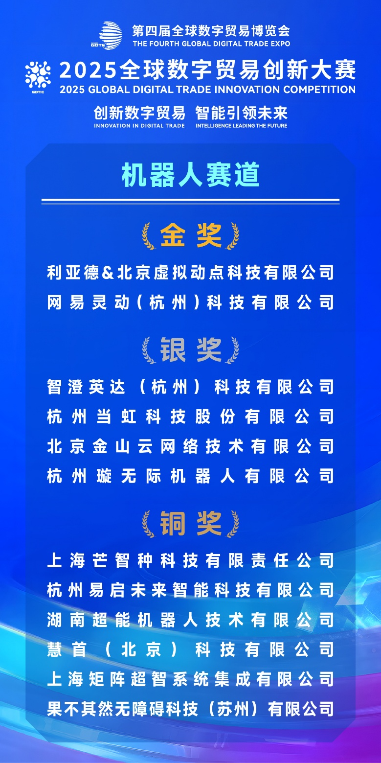 2025全球數字貿易創新大賽決賽首日,北京虛擬動點、網易靈動獲機器人賽道金獎