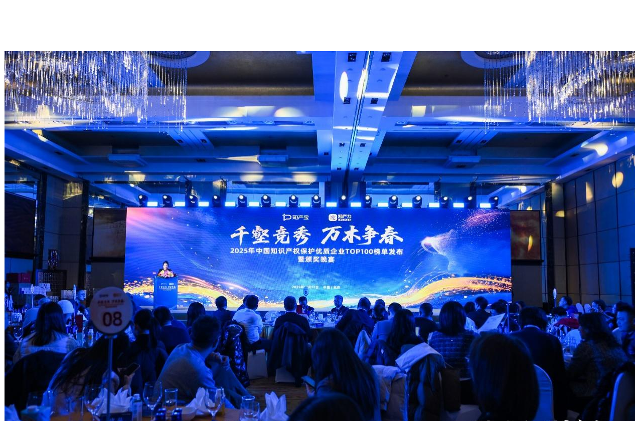 12月12日,由國內領先的知識產權數據與服務平臺知產寶及知產領域專業媒體知產力聯合主辦的“中國知識產權保護優質企業Top 100”榜單發布活動暨頒獎晚宴在北京舉辦。本次活動以“表彰優秀企業,賦能行業發展”為核心,匯聚知識產權專家、企業知識產權負責人、律師精英及行業領軍人物等百余位嘉賓,共同見證中國知識產權保護領域年度標桿企業的揭曉。