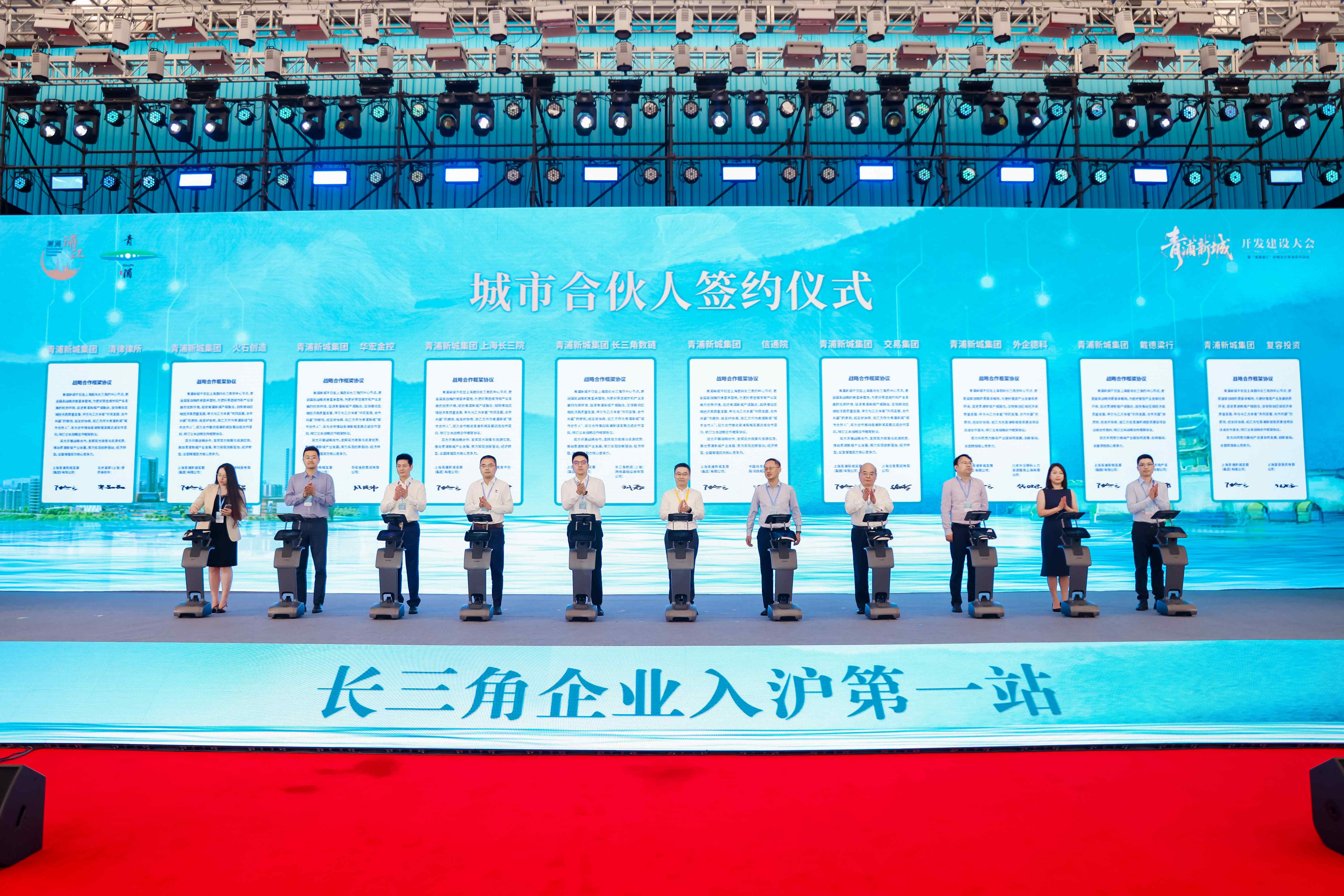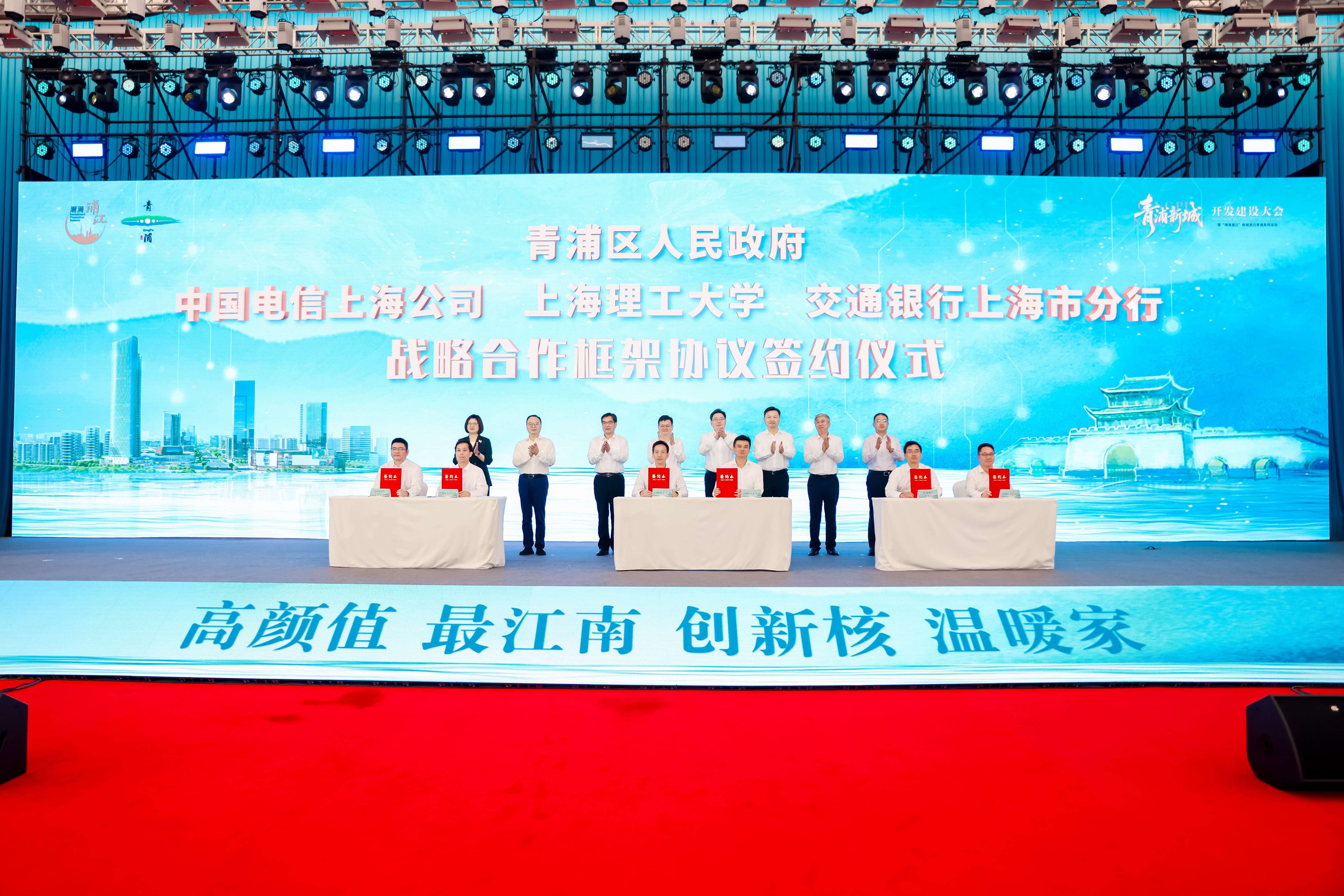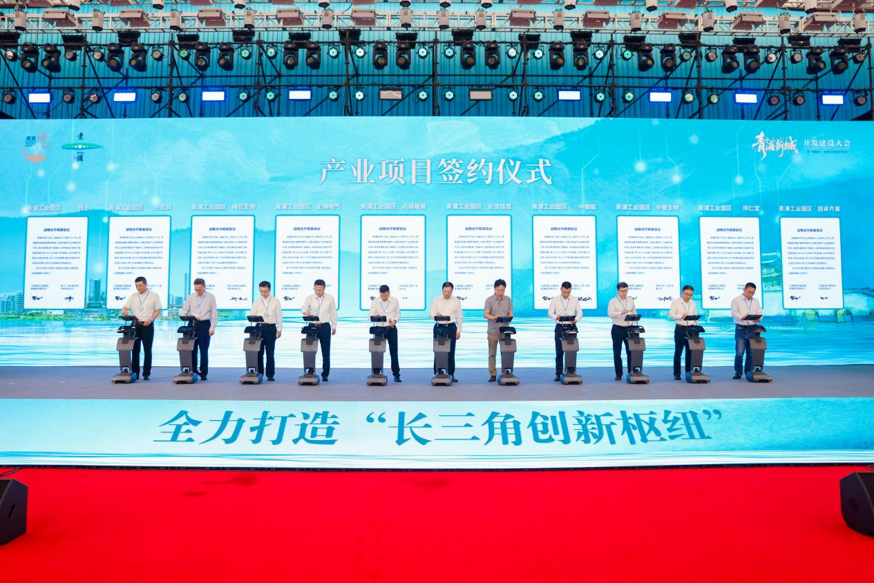 7月25日下午,上海青浦新城開發建設大會暨“潮涌浦江”新城發力青浦系列活動在滬舉行,40個重點項目集中簽約,上海理工大學、中國電信上海公司、交通銀行上海市分行與青浦區政府簽訂戰略合作框架協議,華為與青浦區政府共同啟動“長三角AI+聯合創新中心”合作。這場盛會,彰顯了青浦新城打造“長三角企業入滬第一站”的決心與實力,也為上海服務長三角一體化發展注入新動能。上海市政府副秘書長、市發改委主任、市新城辦主任顧軍,青浦區委書記王平,副書記、區長金曉明等出席活動。