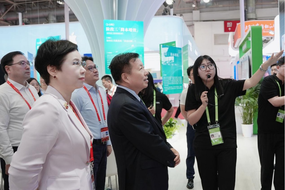 中國貿促會會長任鴻斌,中國貿促會副會長李興乾, 江蘇省人民政府黨組成員、副省長方偉,江蘇省南京市副市長、黨組成員許峰,北京市朝陽區人民政府黨組成員、副區長陳黛等領導,工信部相關司局以及全國工商界企業代表陸續參觀展位,詳細聽取了擎天集團在供應鏈數字化、全球關貿合規、供應鏈綠色化領域的創新實踐成果介紹,并對其以數智技術賦能產業鏈供應鏈重構的探索與成效給予了充分肯定。