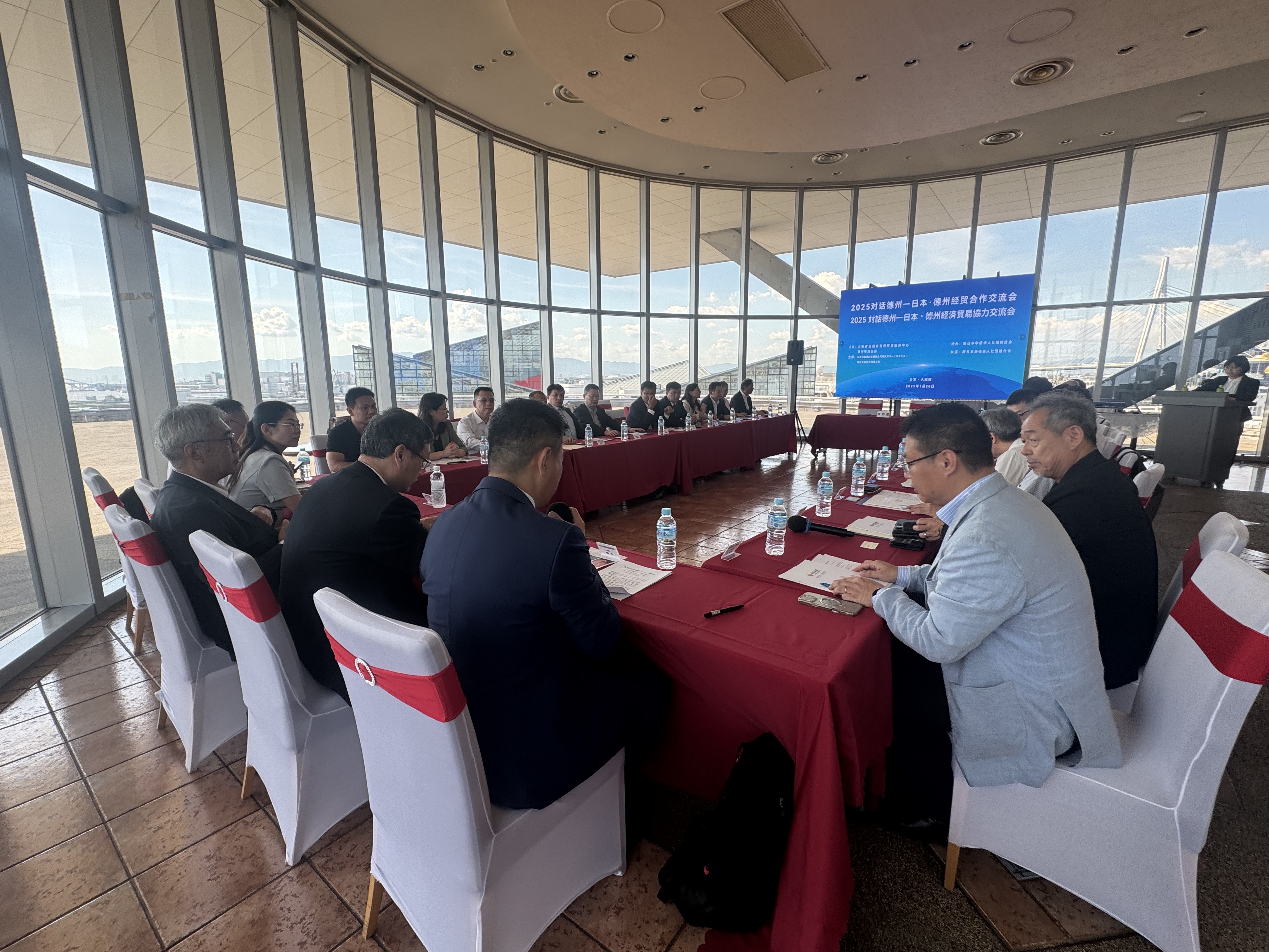 7月28日,世博會“山東周”期間首場市級經(jīng)貿(mào)活動“2025對話德州—日本·德州經(jīng)貿(mào)合作交流會”在日本大阪順利舉行。本次交流會由山東省貿(mào)促會貿(mào)投中心、西日本華僑華人聯(lián)合會和德州市貿(mào)促會共同舉辦,旨在進(jìn)一步深化德州市與日本在經(jīng)貿(mào)領(lǐng)域的合作,搭建兩地企業(yè)交流對接的高效平臺。山東省貿(mào)促會副會長賀忠軍、貿(mào)投中心主任周亮,日本觀光立國推進(jìn)委員會會長谷口俊郎、富田林市原議長岡田英樹等出席會議,中日雙方政府代表、商協(xié)會負(fù)責(zé)人及企業(yè)界代表30余人齊聚一堂,共話合作商機(jī),共繪發(fā)展藍(lán)圖。