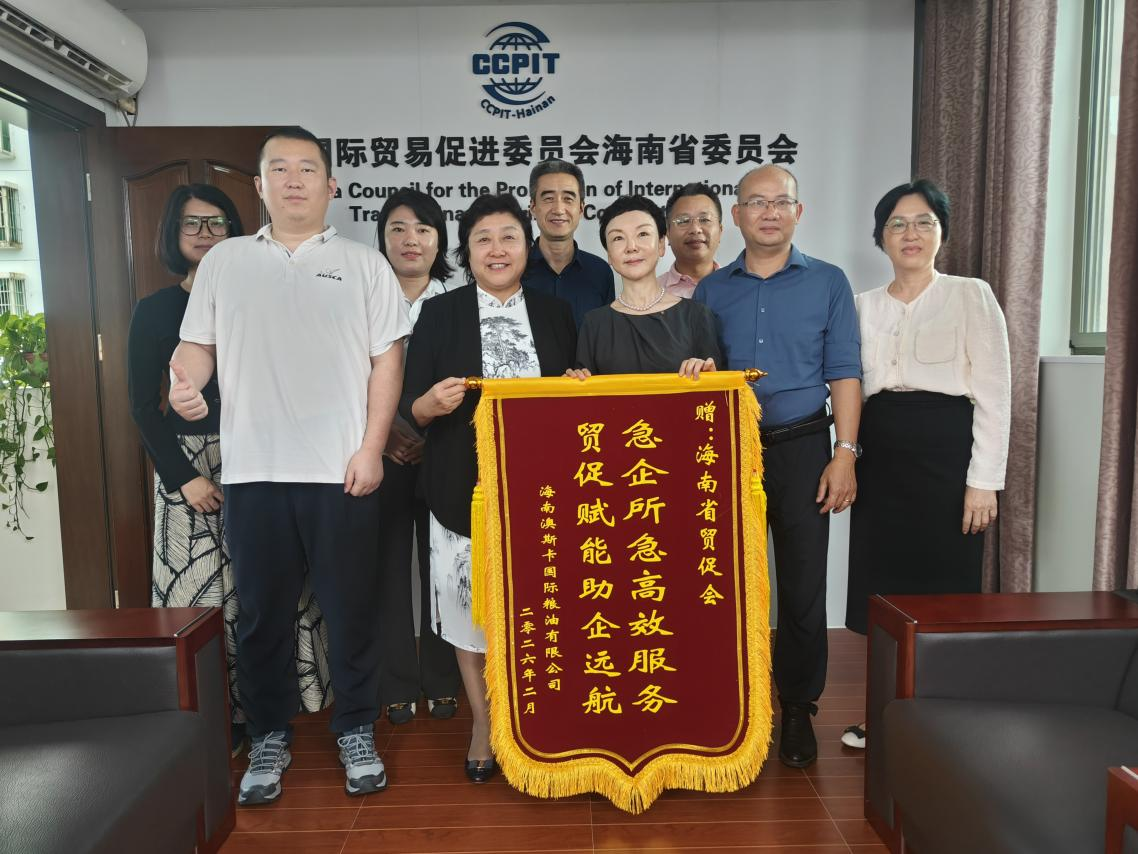 2月28日,海南省貿(mào)促會會議室里氣氛熱烈。海南澳斯卡國際糧油有限公司負(fù)責(zé)人將一面印有“急企所急高效服務(wù) 貿(mào)促賦能助企遠(yuǎn)航”字樣的錦旗送到海南省貿(mào)促會工作人員手中。這面錦旗,不僅承載著企業(yè)的感激之情,更見證了一場跨越重洋的極速護(hù)航。